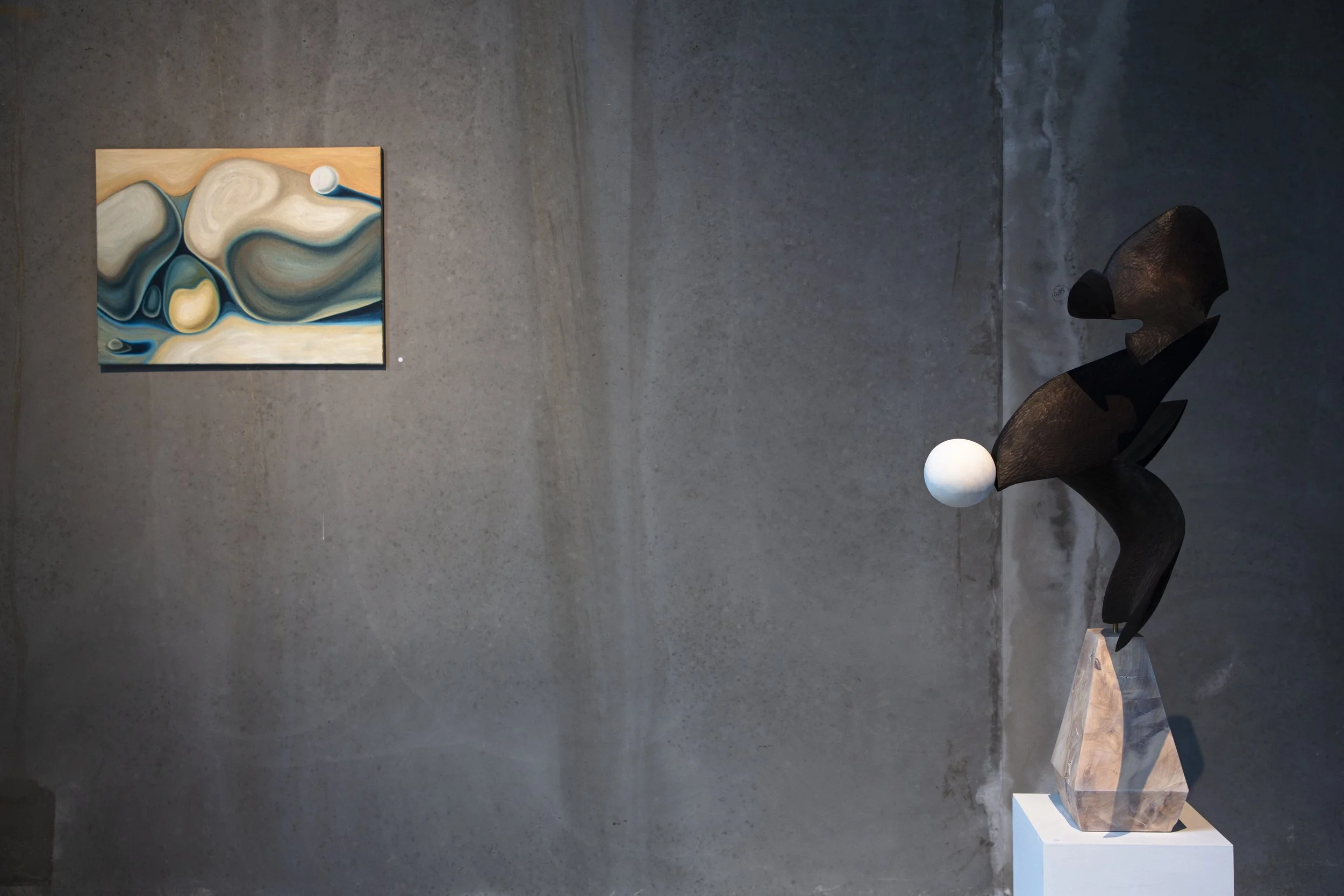 Turbulent and confusing times breed potent artistic expressions, and this exhibition is no exception. The works extend themselves as physical manifestations of concerns debated by the artists - the things that keep them awake at night, such as the ever-present threat of environmental catastrophe. In a post-religious society that is no longer coddling us with naive optimism, it is often difficult to feel hopeful for the future. And so the pair found themselves longing for the catharthis of sacred iconography and ritualistic experience, outside of religion. Percolated through their mediums of choice, interlocked in a dialogue of poetic clashing forms, we see the artists’ visions of spiritual naturalism for this pivotal, unobvious era.